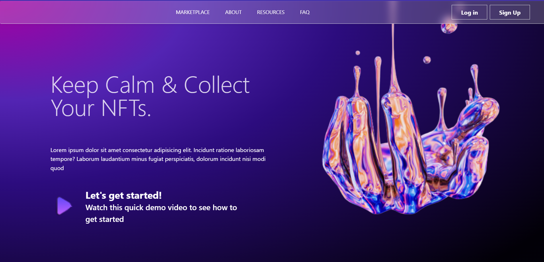 NFT Landing Page is a modern webpage for a Non-Fungible Token (NFT) platform. This project is built using HTML and Tailwind CSS and is only for desktop.